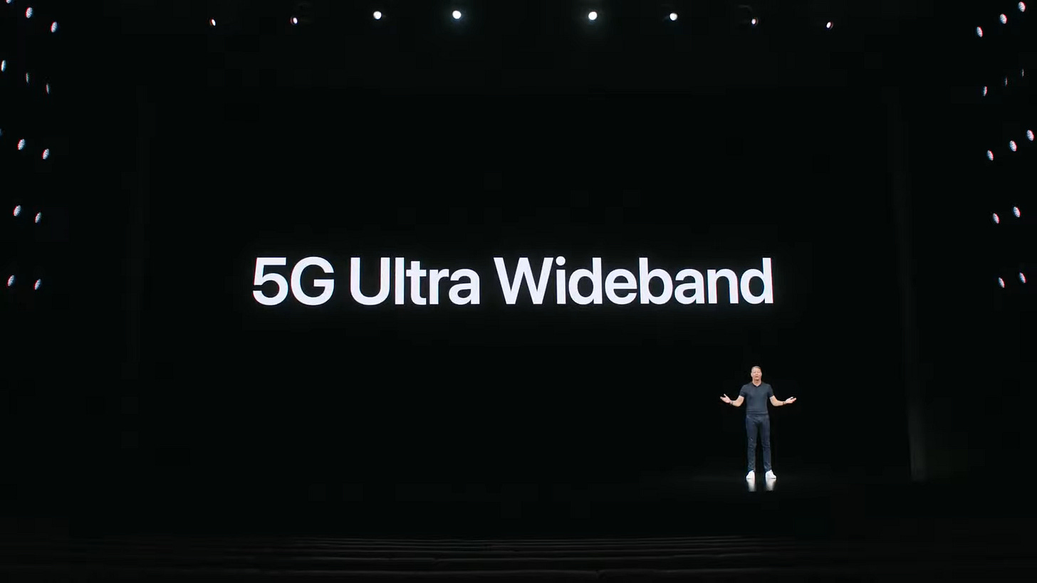 可能也的确是考虑到这一点,苹果甚至还在发布会上让 Verizon 的 CEO Hans Vestberg 上台介绍了 4 分钟自家业务,同时,Vestberg 在发布会中提到的「5G 超宽频网络」,本质上就是基于 Verizon 在美国主要城市中采用 mmWave 5G 布网模式,实现的超高速网络体验。