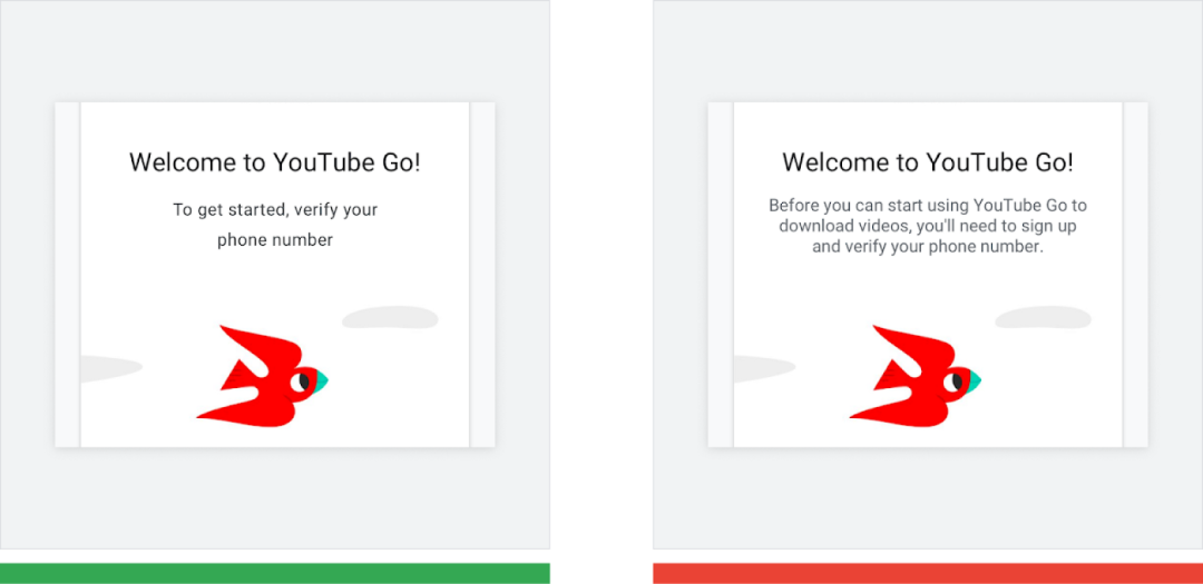 正如 Material Design 文案设计指南 中所述,保持用语简明十分重要。这一原则对开拓新兴市场尤其重要,因为非英语母语的用户在使用英语应用时,可能难以理解复杂的句子结构。新用户也可能不理解一些技术概念,因此在解释说明「注册」 和「权限」等步骤时更应谨慎。