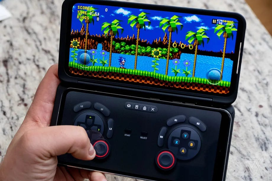 这样的设计,也让 Dual Screen 最终成为了少数 LG 称得上「成功」的创新之一,实际上,直到现在你也还能从官方渠道买到库存的 LG V60(但也别真买就是了),它同样支持双屏配件,同时增加了全屏键盘显示以及游戏手柄模拟等特色功能。