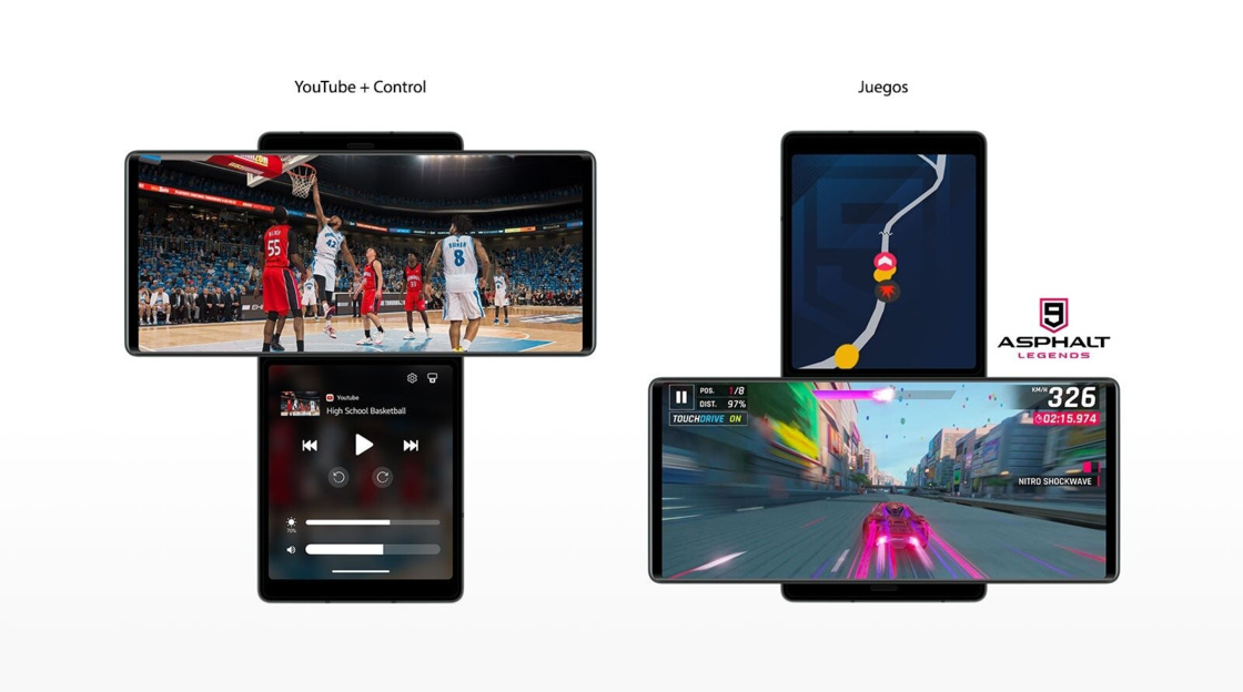 LG Wing 这种双屏设计,其精髓在于保留了一片不被干扰的完整屏幕供显示内容的同时,还提供了一片额外的显示区域,两片屏幕有各自不同的显示模式,并且你可以随心所欲的通过改变握持方式来调整两片屏幕的功能与布局:比如在播放 YouTube 视频时,副屏会自动变为一个显示视频进度条与播放列表的控制面板,玩《狂野飙车 9》时,副屏可以自动显示为地图导航 。
