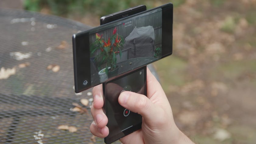 除了这些之外,LG 做了一些有意思的功能,比如「云台」就是通过副屏的拨杆,控制相机的取景画面移动实现类似云台的视频录制效果(实际原理是从更大的取景范围内裁切画面),以及让更大的主屏充当键盘或是将副屏用作一块触摸板来提升来交互效率,后期还通过 OTA 更新了进一步拓展双屏使用场景的驾驶模式。