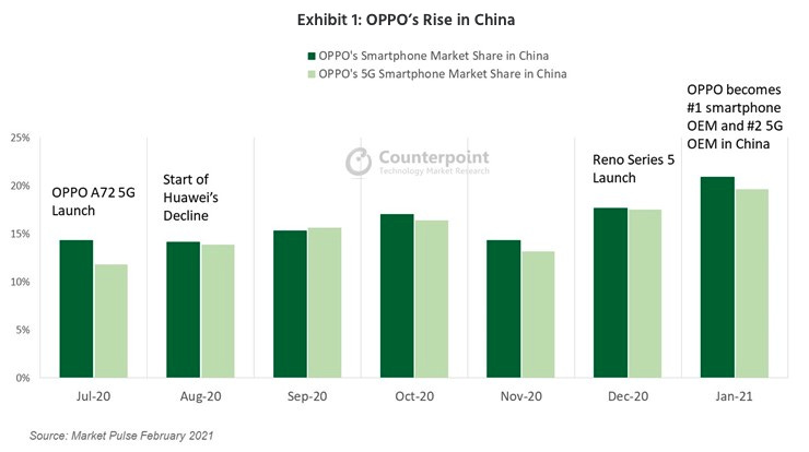 中国大陆毫无疑问是当今全球最大、竞争激烈的智能手机市场,而在风起云涌的 2020,Oppo 摘得了中国智能机市场份额第一的桂冠。