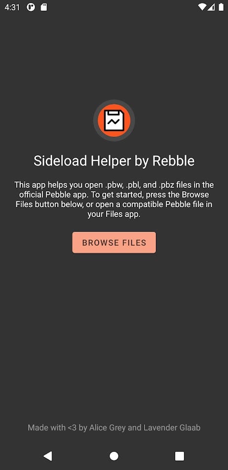 但在 Rebble 社区 中,一个名为 Sideload Helper 的社区应用可以让现代 Android 手机打开 Pebble 文件,并实现基本的智能功能,从而延长 Pebble 手表的使用寿命。
