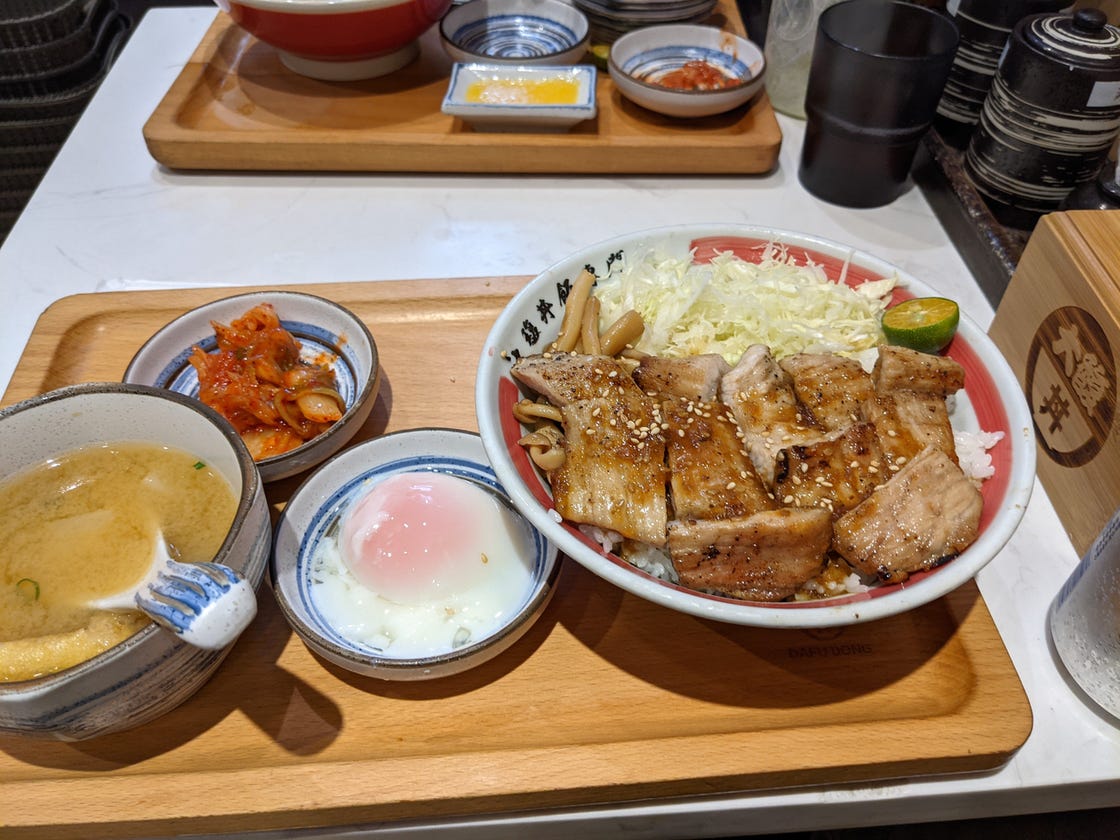 超受欢迎的大馥丼烤肉盖饭,浇入温泉蛋非常爽口,味增汤也很日常。