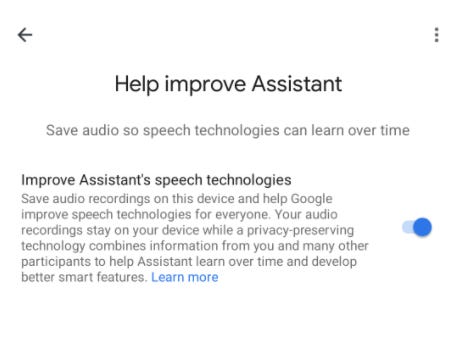 当你开启该选项时,联合学习算法会自动将你激活成功 Google Assistant 录音以及没有成功激活的录音保存在本地,只是保存在你的设备上,最长可保存 63 天。但这一数据不会保持在服务器上,你也可以随时关闭这一功能,关闭之后 Google Assistant 就会自动删除在设备上保持的录音与数据。