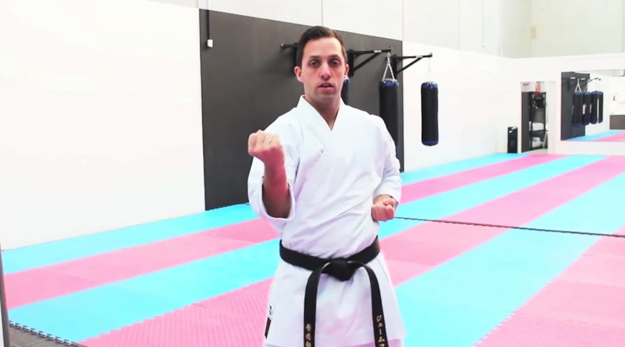 接下来视频就开始逐渐跑偏让你忘记标题:总计不到 2 分钟的视频大约有 40 秒是在播放一则空手道入门视频。