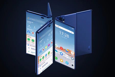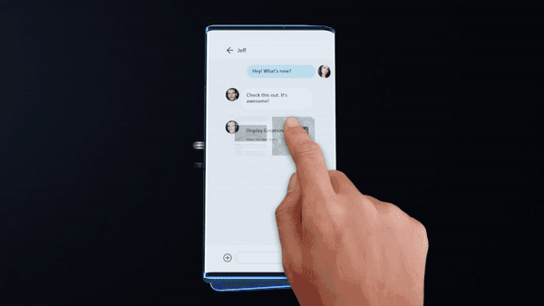 到了 2021 年,TCL 又发布的新的折叠屏概念机:与去年直接简单粗暴的「Z」形折叠设计不同,今年的 Fold ‘n Roll 是一款集结了折叠屏与机械拉伸结构为一体的折叠屏手机,当你伸展开折叠屏之后,还能通过类似 OPPO/LG 概念机出现过的抽拉式屏幕,进一步增大手机的显示面积。