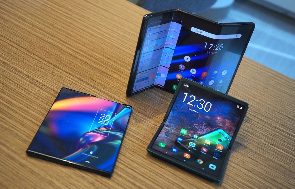 现在看来,TCL 明显并不认为当前主流的内折式折叠屏手机会是未来真正的发展方向,将手机借助折叠屏技术,将其变成一块真正称得上大屏的设备,才是 TCL 隐藏在这些概念机之下的研发目标。