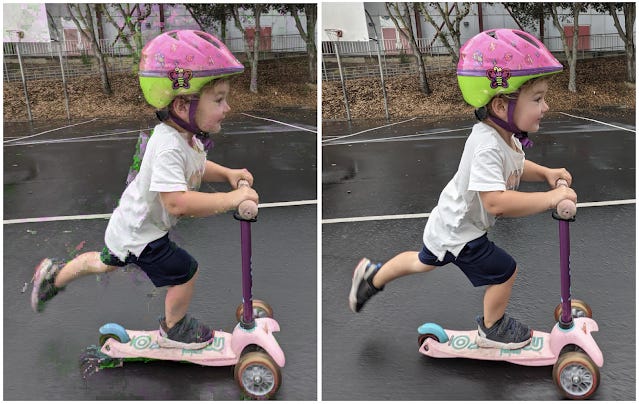 而借助包围曝光技术,就需要合并更多的短曝光帧,来将信噪比恢复到单次长曝光的水平:但算法带来的挑战也让这一功能直到今日才正式为 Pixel 设备推送,同时研究人员还优化了合并算法,选择其中一个短帧作为参考帧,并使用新的合并算法避免出现鬼影等情况,同时还将合并速度相比前代 HDR+ 算法提升了 40% 。