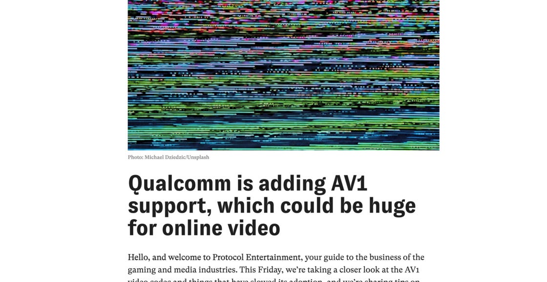 Protocol 本周援引消息人士报道,代号为 SM8550 的下一代高通骁龙旗舰 SoC(可能名为 8 Gen 2)将首次支持硬件 AV1 解码。