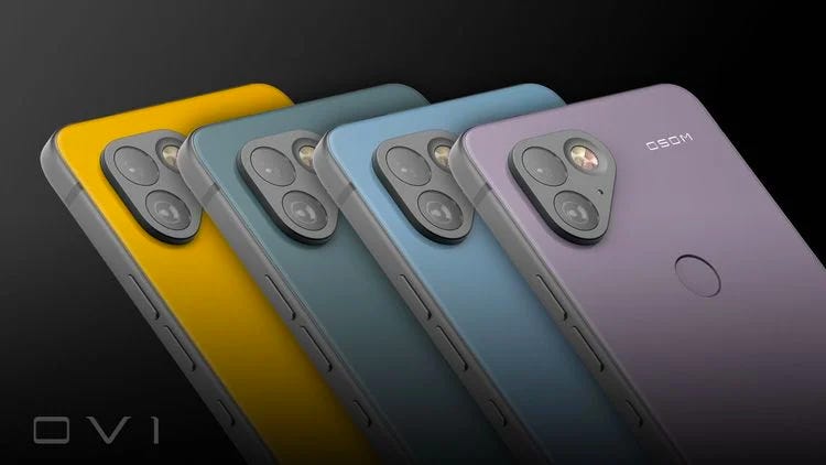 由前 Essential 团队核心成员组成的新手机品牌 OSOM 本周在 领英 上发布了关于首款新机 OSOM OV1 一系列新配色设计的照片,包括太阳黄、北极光绿、暮光蓝和黄昏紫等看起来相对少见的配色。