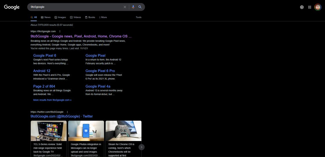 Google 正在 web 端测试纯黑背景 UI 界面。相比目前暗色模式的灰色背景变成了 #000000 色调,但视觉效果上就没有那么柔和了。目前这一改变还在 A/B 测试阶段。